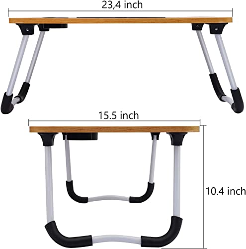 Generic - MySouq-Store Foldable Laptop Table, Breakfast Serving Bed Tray, Lap Desk with Foldable Leg & Tablet Phone Groove & Cup Slot for Reading Writing Eating on Bed Couch Sofa Floor (Brown)