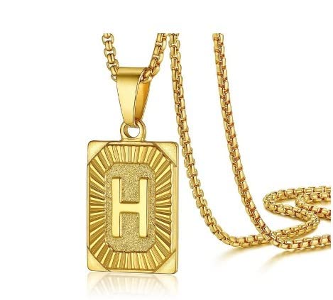 Generic - MySouq-Store (H) Letter Gold Color Pendant Necklace for Men Women Cuban Chain Couple Charm Initial Necklace Choker Jewelry Collar