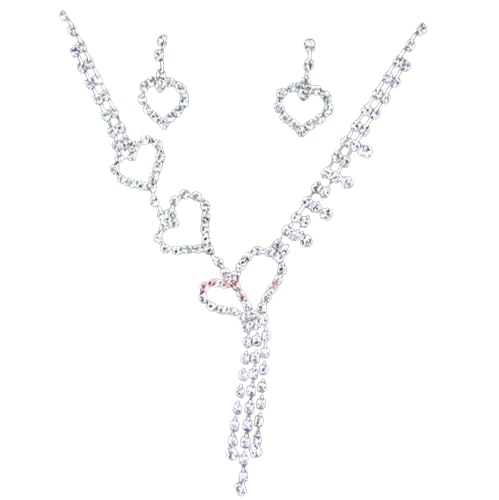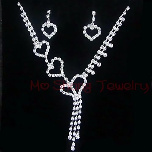 Generic - طقم مجوهرات للعروس من ماي سوق ستور [طقم واحد] طقم مجوهرات للعروس مرصع بحجر الراين مطلي بالفضة لفستان الزفاف والولائم وقلادة واقراط، هدية للسيدات (002)، معدن، متعدد الألوان