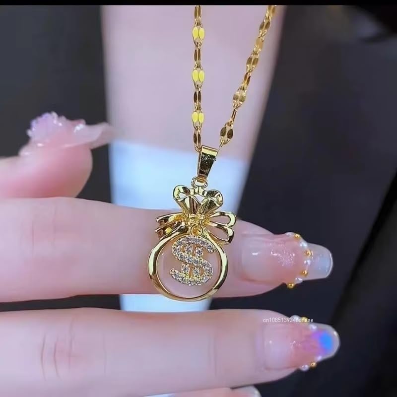 Generic - عقد بقلادة على شكل شنطة نقود للنساء من ماي سوق.ستوت، مصنوع من الستانلس ستيل برمز عملة ذهبية اللون سلسلة قلادة قلادة مجوهرات عصرية جديدة هدايا