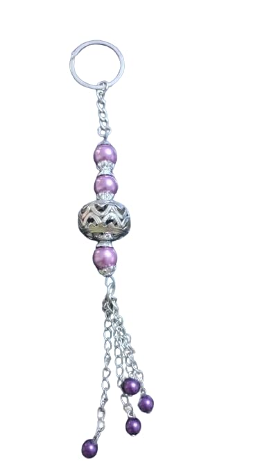 Generic - MySouqEg | Elegant Charm Keychain – Purple Pearl & Silver Bead Tassel Design