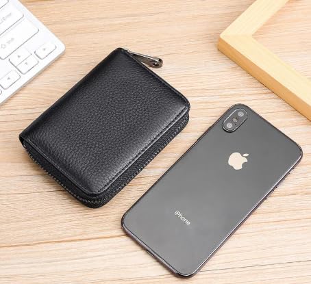 - MySouqEg - Store (1 pcs) Compact Zippered Card Holder – 10-Slot PU Leather Wallet for ID, Credit Cards & Smart Cards Black