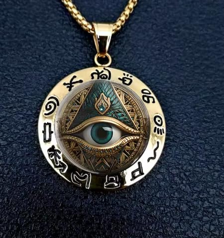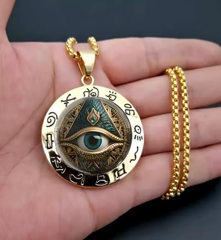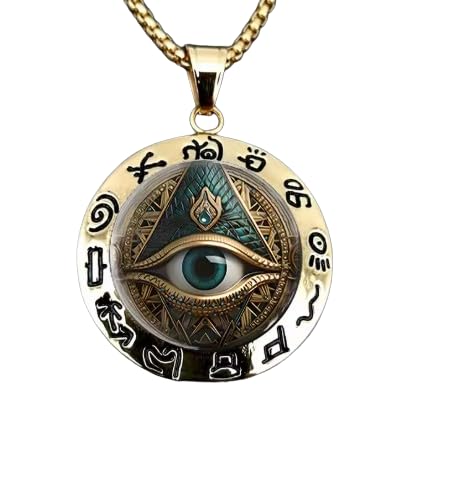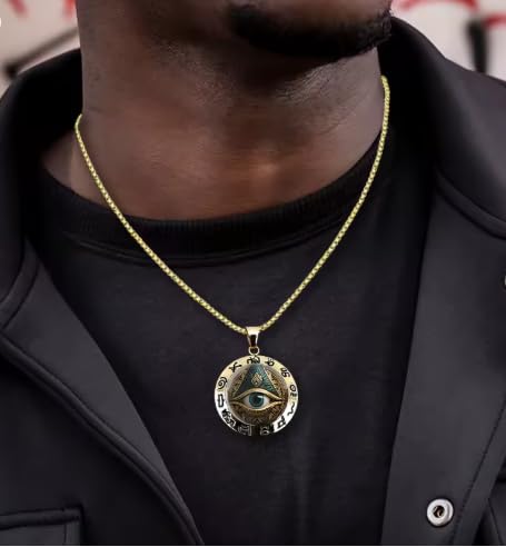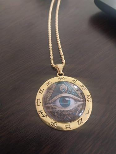 Generic - MySouqEg - Store (1 pcs) Elegant Egyptian Eye Pendant Necklace with Golden-Tone Alloy Chain - Intricate Hieroglyphic Design, Perfect for Halloween, Christmas, and Birthdays