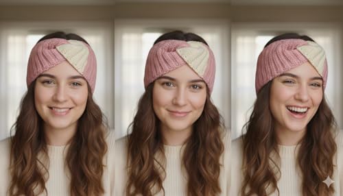 Generic - MySouqEg - Store - (1 pcs) Hand-Knitted Twist Ear Warmer Headband – Soft & Breathable Winter Accessory for Women 22 cm (Length) x 9 cm (Width) (Pink)