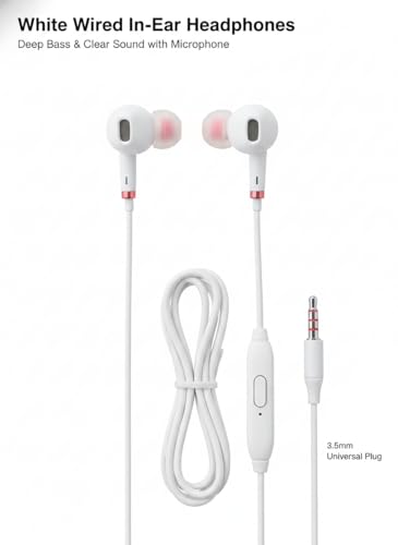- MySouqEg - Store - (1 pcs) Wired Earphones with Microphone, In-Ear Headphones Play/Pause Button,Jack, (white)