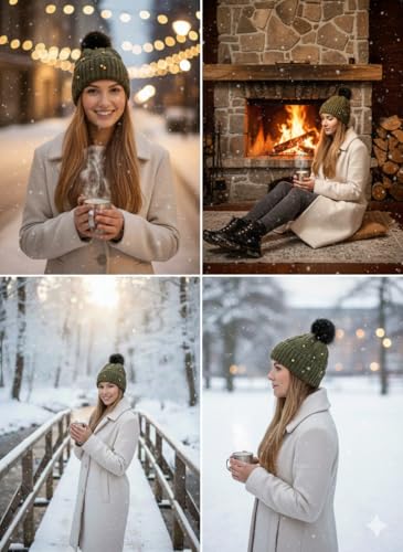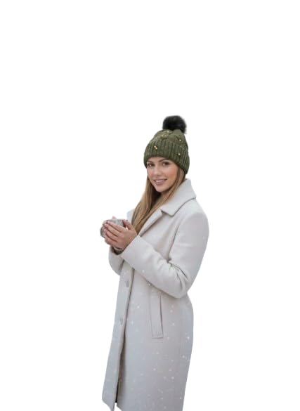 Generic - MySouqEg - Store - (1pcs) Women's Winter Beanie Hat – Elegant Cable Knit with Bead Embellishments and Faux Fur Pom-Pom – Cozy & Stylish Warm Slouchy Skull Cap
