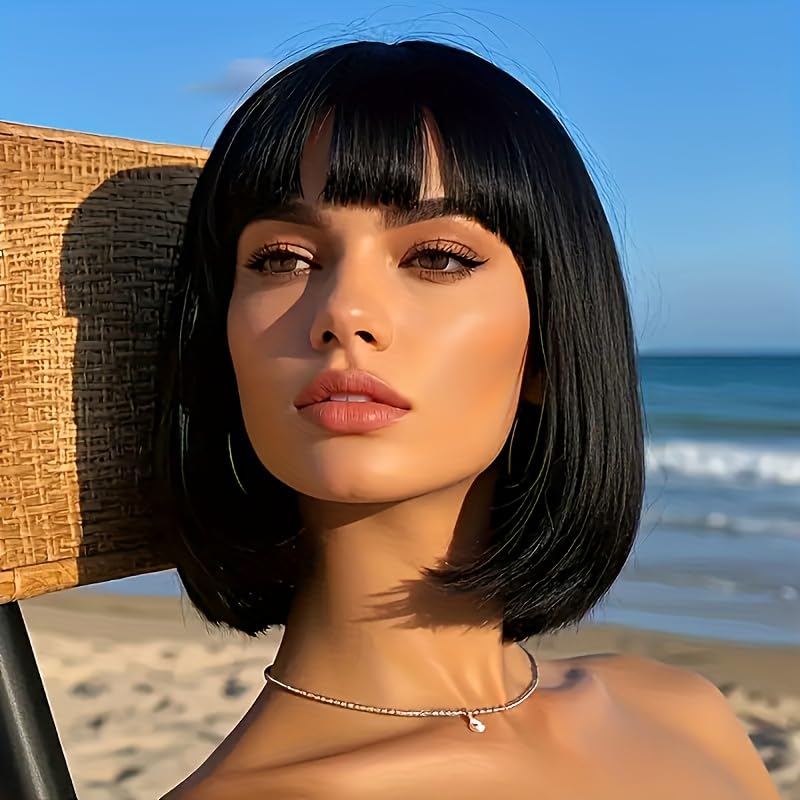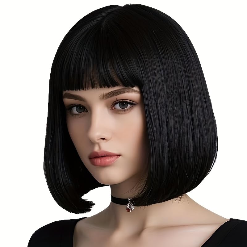 - CLASSIC BOB STYLE: Short black bob wig with straight bangs creates a chic, sophisticated look perfect for everyday wear or special occasions