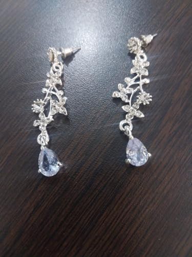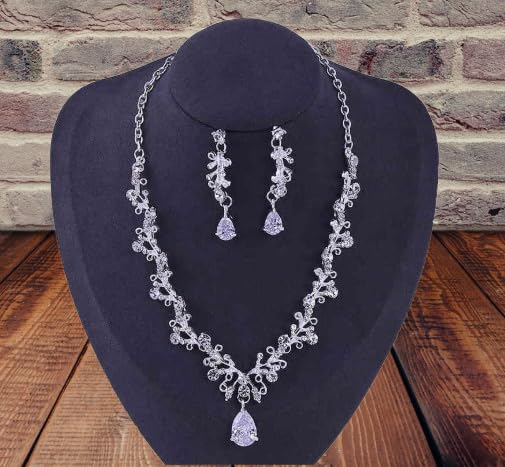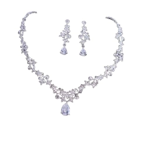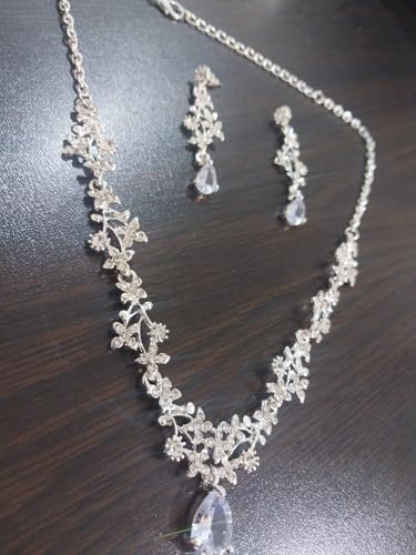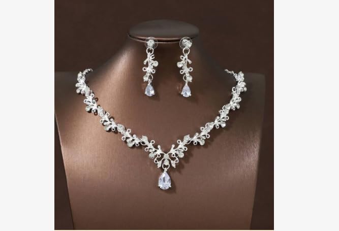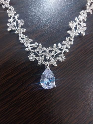 Generic - مجموعة مجوهرات فاخرة للنساء من ماي سوق ايج - قلادة واقراط كريستال 25 سم - تصميم انيق مطلي بالفضة لحفلات الزفاف والمناسبات الخاصة