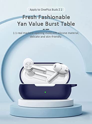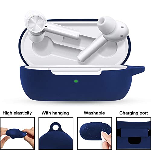 MYVN - جراب سيليكون لعلبة سماعات الاذن اللاسلكية ون بلس بودز Z2 من ماي فن، جراب رفيع واقي ومضاد للخدش والسقوط بخطاف حلقي (سماعات الاذن غير مدرجة) (ازرق)، لون بلس بادز زد 2