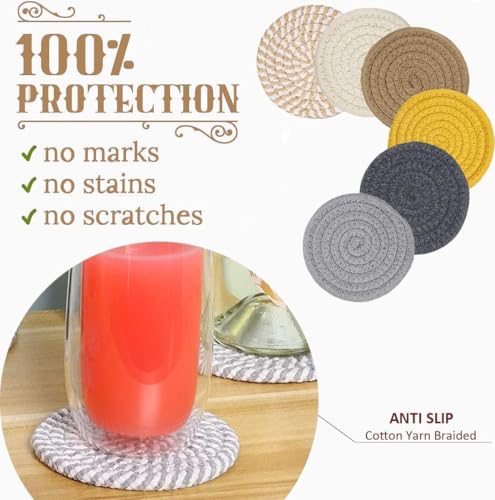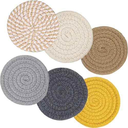 Generic - قواعد أكواب للمشروبات مضفرة يدويًا وقابلة للغسل، 6 قطع (11 سم، دائرية، 8 ملم سمك) قواعد أكواب فائقة الامتصاص ومقاومة للحرارة للمشروبات والتقديم لتدشين منزل من ام زد (متعددة الألوان)