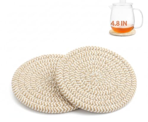 Generic - MZ Cotton Rope Coasters for Hot Drinks, Round Woven Design, 12 cm Diameter, Heat Resistant Table Protection, Set of 2 (Latte)