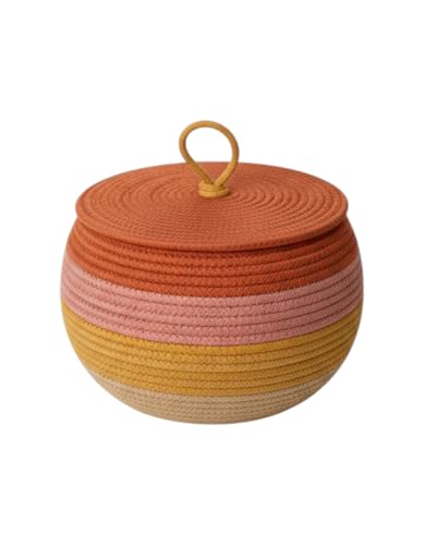 Generic - MZ Cotton Rope Storage Basket with Lid, Grey Ombre Stripe Pattern with Turquoise Trim, Decorative Container, 30 cm Diameter and 20 cm height