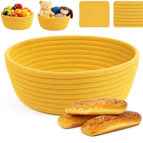 Generic - MZ Cotton Rope Storage Bowl, Round Decorative Basket for Bread and Pastries, cream, 22 x 9 cm (Golden Yellow)