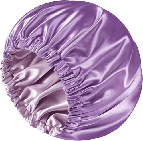 Generic - MZ Luxury Double-Layer Satin Shower Cap, Makeup Bonnet with Elastic Band, Purple