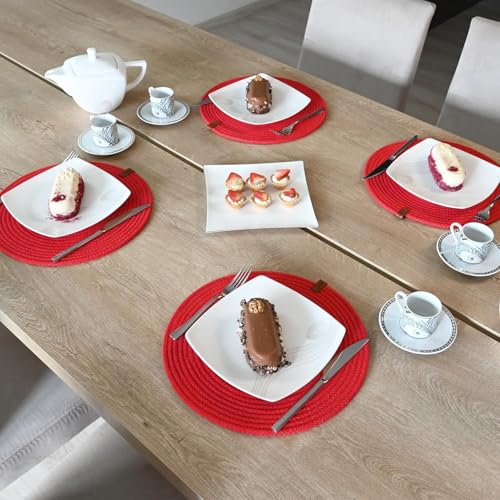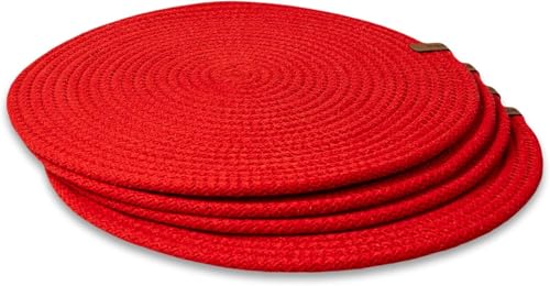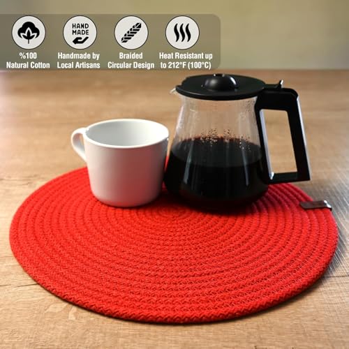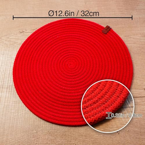 Generic - MZ Round Placemats, Set of 4, Handmade by Braided Cotton Cord for Kitchen and Dining Table, Dia. 32 cm, Doublesided, Heat Resistant, Washable, Red(washable)(natural cotton)