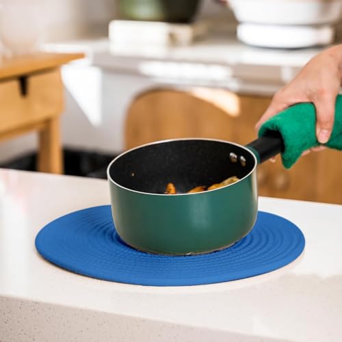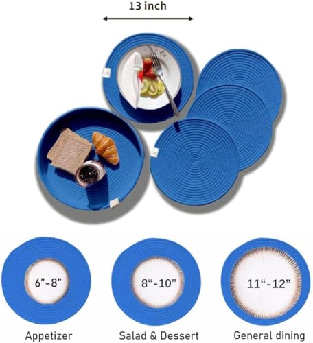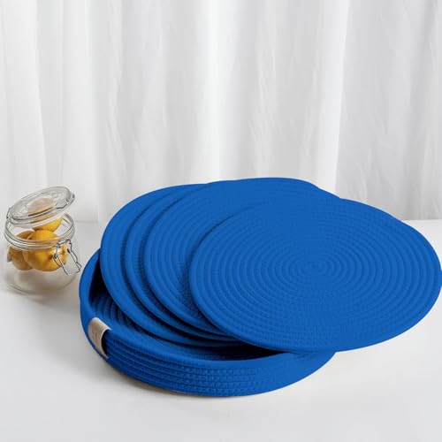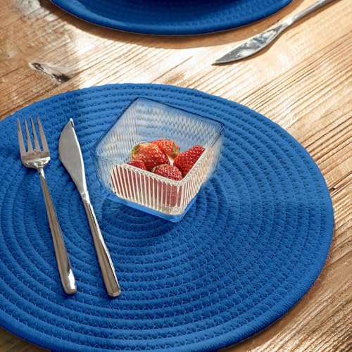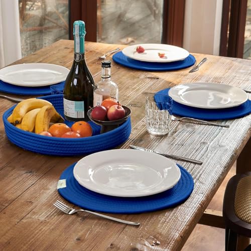 Generic - MZ Woven Cotton Rope Round Placemats Set of 4 with Holder Included, Non-Slip, and Heat Resistant for Your Perfect Table Decor! (Navy Blue, 33 cm)(washable)(natural cotton)