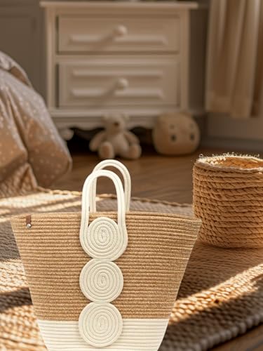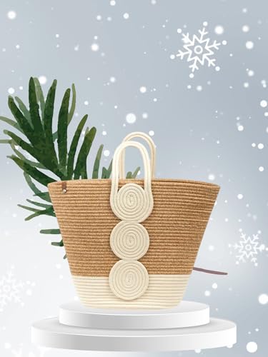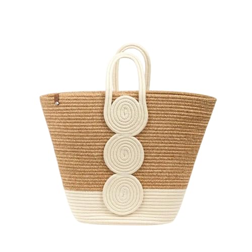 Generic - MZ Woven Straw Beach Tote Bag, Natural Two-Tone with Rope Design, Large Handcrafted Summer Handbag
