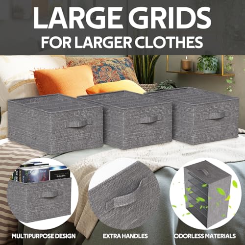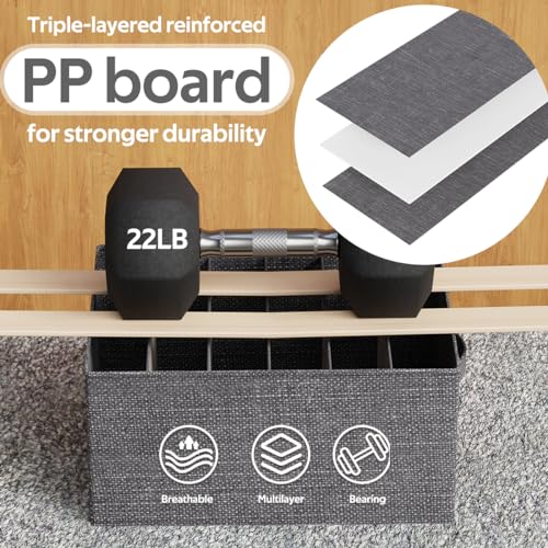 - Product Upgrade: provide an upgraded version of wardrobe storage organizer. The wardrobe storage Bins is supported by thick polyester fabric + PP board, and the interior is separated by a breathable nylon mesh. The thickened edges are enough to support jeans and tights, which perfectly improves product and avoid deformation, collapse, etc.