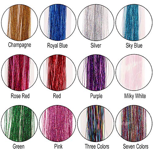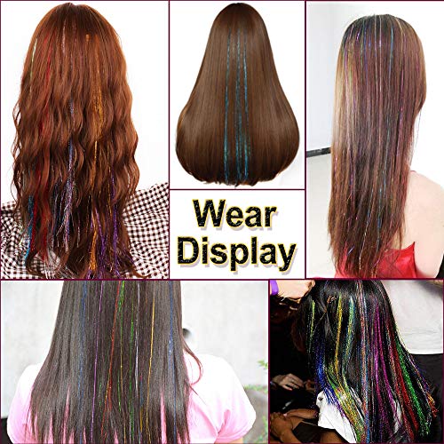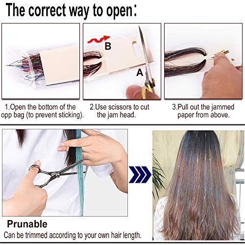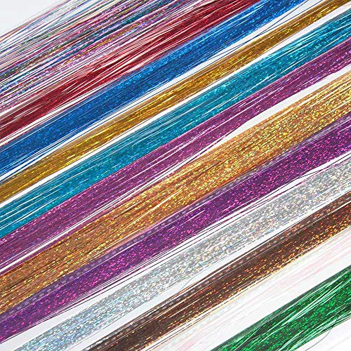 - 【Material】Made of high quality material. Cool and fashion, sparkling and shiny strands hair tinsel is good for daily hair beauty. You can pick the color you want in your daily dress up, or use different colors together to make your hair colorful.