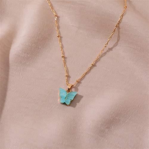 N / A - N / A XJQ666-ZD Cute Butterfly Pendant Necklace Fashion Necklace Jewelry Gift Holiday Gift Decorative pendants suitable for boys and girls (Metal Color : Blue)