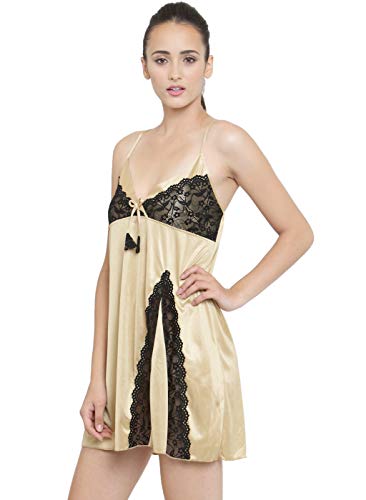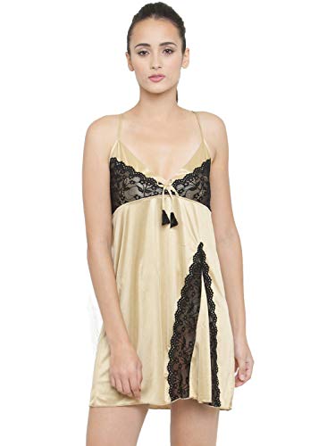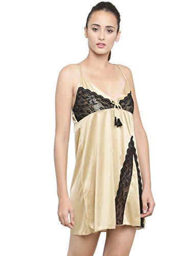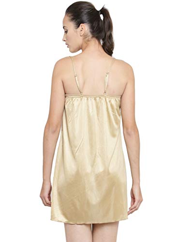 N-Gal - N-جال ملابس نوم نسائية بياقة رفيعة من الساتان بتصميم دانتيل للعروس، بيج، مقاس 38