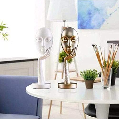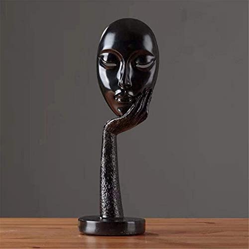 N&R - منحوتة عصرية تجريدية بتصميم فني على شكل وجه سيدة من الراتنج لديكور المنزل من قطعة واحدة بلون اسود من ديازوتان