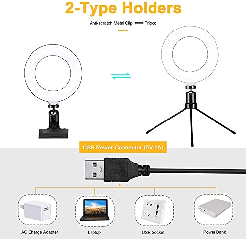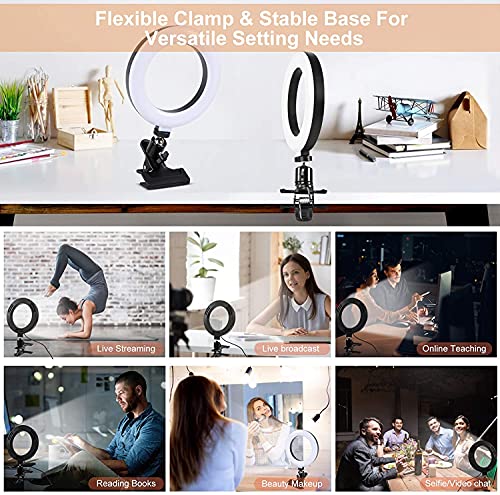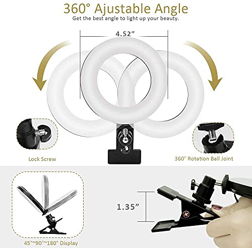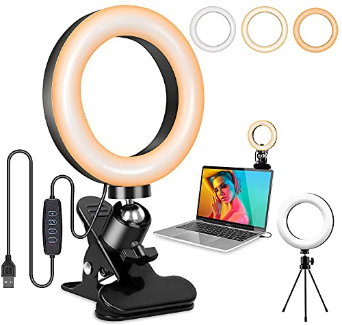 N2 - إضاءة مؤتمرات الفيديو، حلقة إضاءة LED قابلة للتعتيم 15.2 سم مع مشبك حامل للبث المباشر والعمل عن بعد وتسجيل الفيديو
