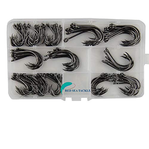 N\A - NA 130pcs/box Red Sea Tackle Fishing Hooks High Carbon Steel Live Bait J-Hooks