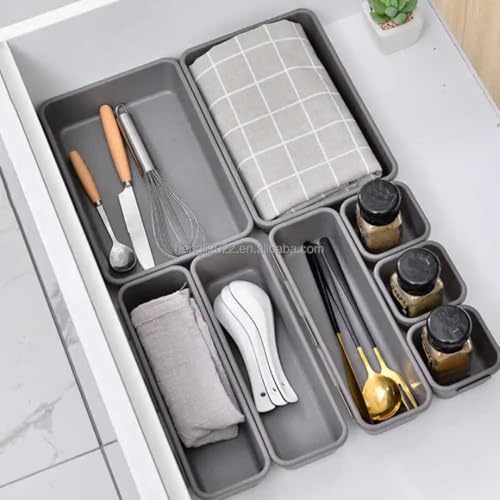 - THE EVERYTHING INTERLOCKING DRAWER ORGANIZER: No matter where you use this set of 8 durable desk drawer organizers and storage — this multipurpose desk drawer organizer tray shallow keeps your things in order. You can freely mix and match them to increase the storage capacity in your drawers to fit a variety of home and office needs.
