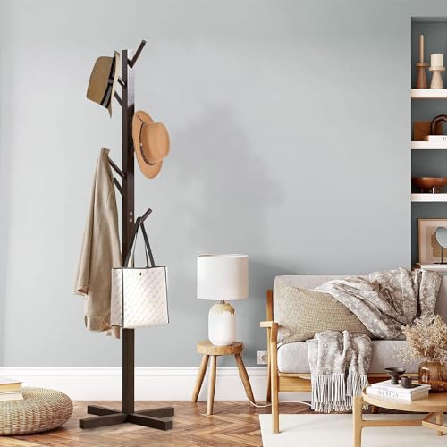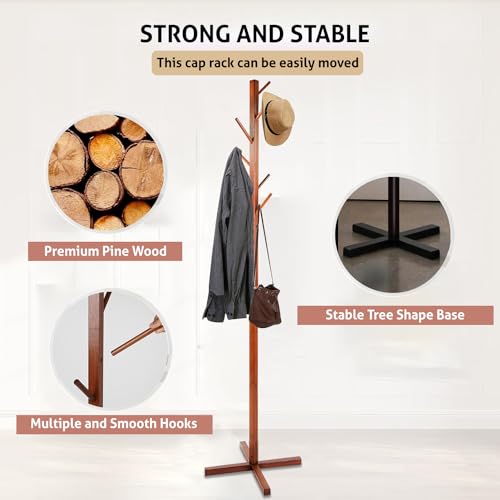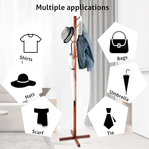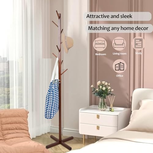 - SOLID CONSTRUCTION: This Free Coat Racks Standing is made by pine wood coated with environmentally friendly lacquer, which is waterproof, anti-corrosion and non-toxic.Cross-shaped solid wood base, more robust,In addition, there are cross base at the bottom to make it more stable, without worrying about the risk of falling down easily. Move easily and require less space.