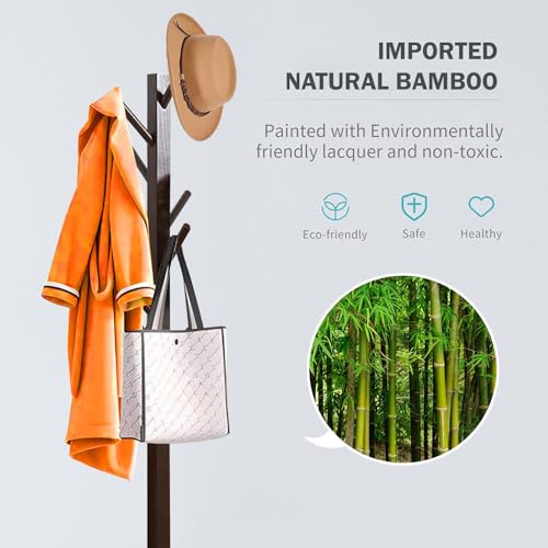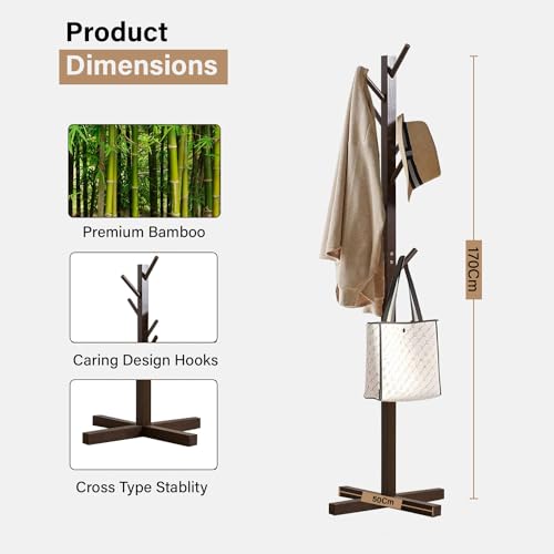 Naayaab Craft - Naayaab Craft Clothes Rack Free Standing Tree Shaped Bamboo Coat Stand with 8 Hooks for Hanging Coats Hats Bag - Cloth Stand (50 x 50 x 151cm) - Dark Brown