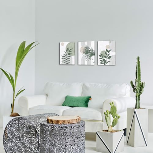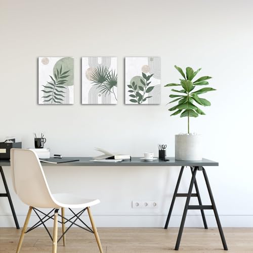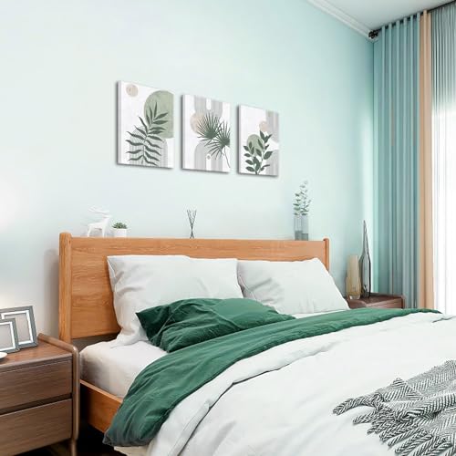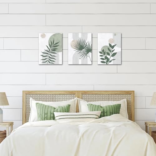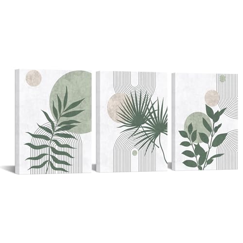 Nachic Wall - لوحة حائط فنية مؤطرة لديكور حمام بلون أخضر مريمي وتصميم من منتصف القرن، لوحة قماش للرسم حديثة بنمط بوهو بوتانيكال، (لون أخضر)