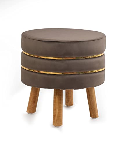 - {STYLISH DESIGN} : The vanity footrest ottoman stool is made of imported fine velvet. Round seats and gorgeous velvet cushions show luxurious mid-century style and modern appeal, provides soft high density foam to help you relax, sturdy foundation includes 4 Poloshed Wooden legs.