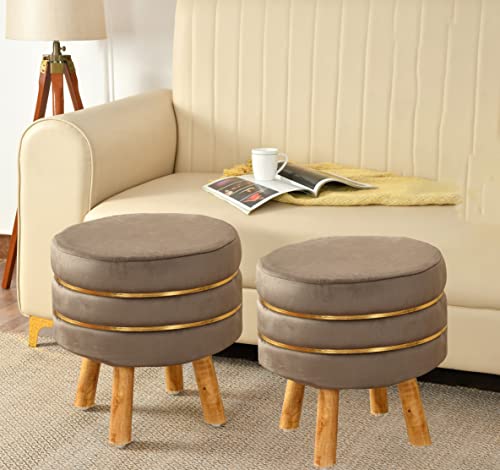 NACIA - NACIA Ottoman Stool for Living Room Set of 2 Sitting Pouffes upholstered pouffe Puffy for Foot Rest Home Furniture Mudda Pouf Round Sitting 4 Wooden Legs Foot Stool for Office Room Décor, Coffee