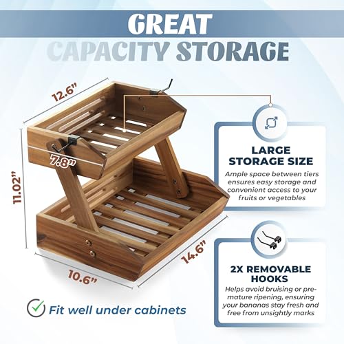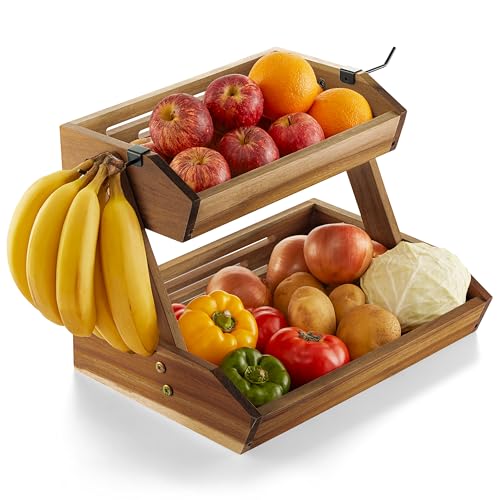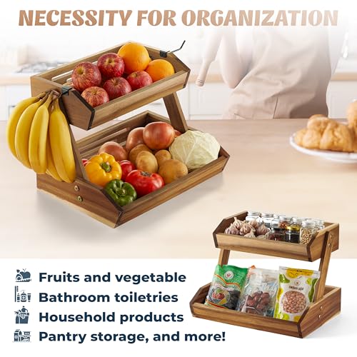 NAGAWOOD - Fruit Basket, Fruit Bowl, 2 Tier Fruit Basket, Fruit Stand Storage Holder, Multipurpose/Large Capacity for Fruit, Vegetables, Bread Storage and Home Kitchen