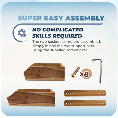 - EASY TO INSTALL AND CLEAN: Simplify your kitchen routine with easy installation using two pre-assembled baskets and two bars, secured effortlessly with a hex key. Cleaning is a breeze – a gentle wipe with a damp cloth keeps it looking pristine, ensuring both convenience and cleanliness in your kitchen space.