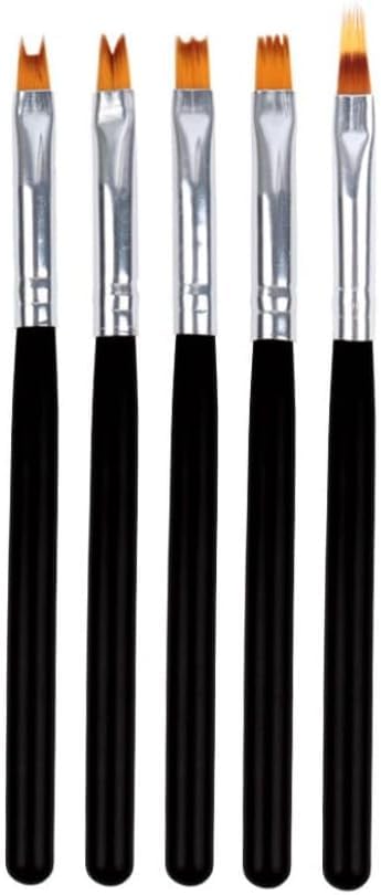 Generic - مجموعة فرش طلاء لتصميم الأظافر الاحترافية بمقابض سوداء لطلاء الجل وألوان الأكريليك والتفاصيل الدقيقة، عبوة مكونة من 5 قطع
