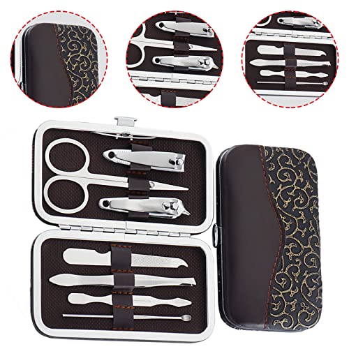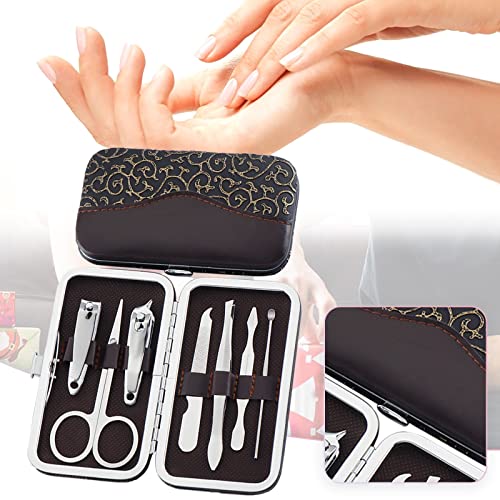 Xiahium - Nail Clippers and Beauty Tool Portable Set 7 Pcs Stainless Steel Professional Manicure Pedicure Set with PU Case for Home Travel