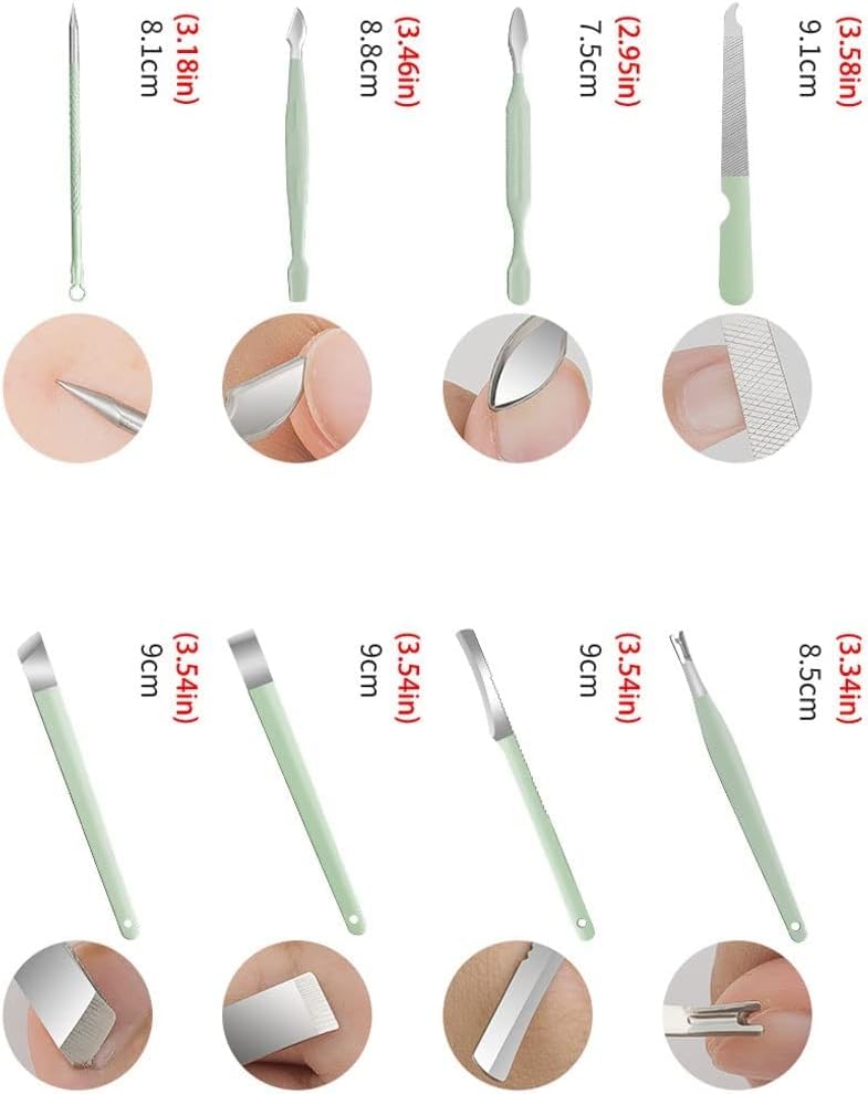 - هذه المجموعة المنسقة بدقة مناسبة لجميع الأفراد الذين يسعون إلى الحفاظ على نظافة أظافرهم وجمالها، مما يجعلها إضافة أساسية لأي روتين للعناية الشخصية. تم تصميم كل أداة من أجل الدقة وسهولة الاستخدام، مما يسمح بتجربة مانيكير وباديكير بدرجة احترافية في راحة منزلك.