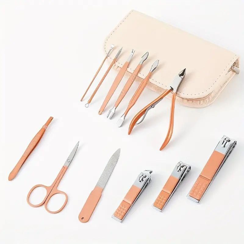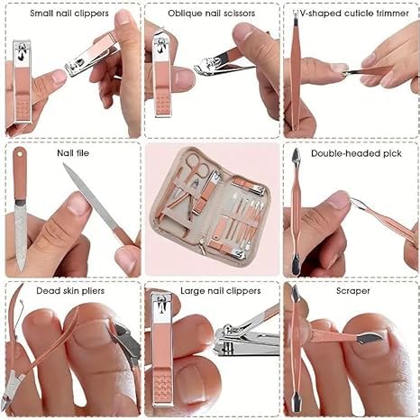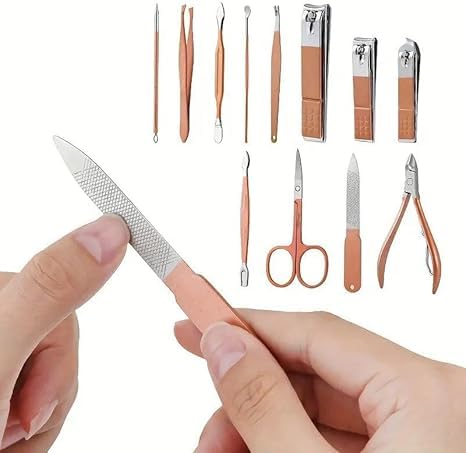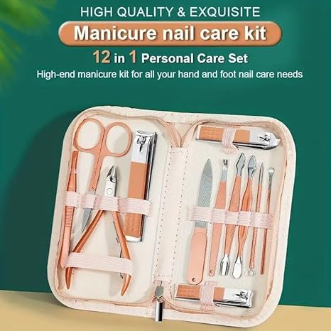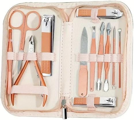 Generic - Nail Clippers for Women Professional Pedicure Set Lakobos Stainless Steel Manicure Pedicure Tools Portable Travel Scissors Tweezer Knife Ear Pick 18 in 1 (Rose Gold) Multicolor