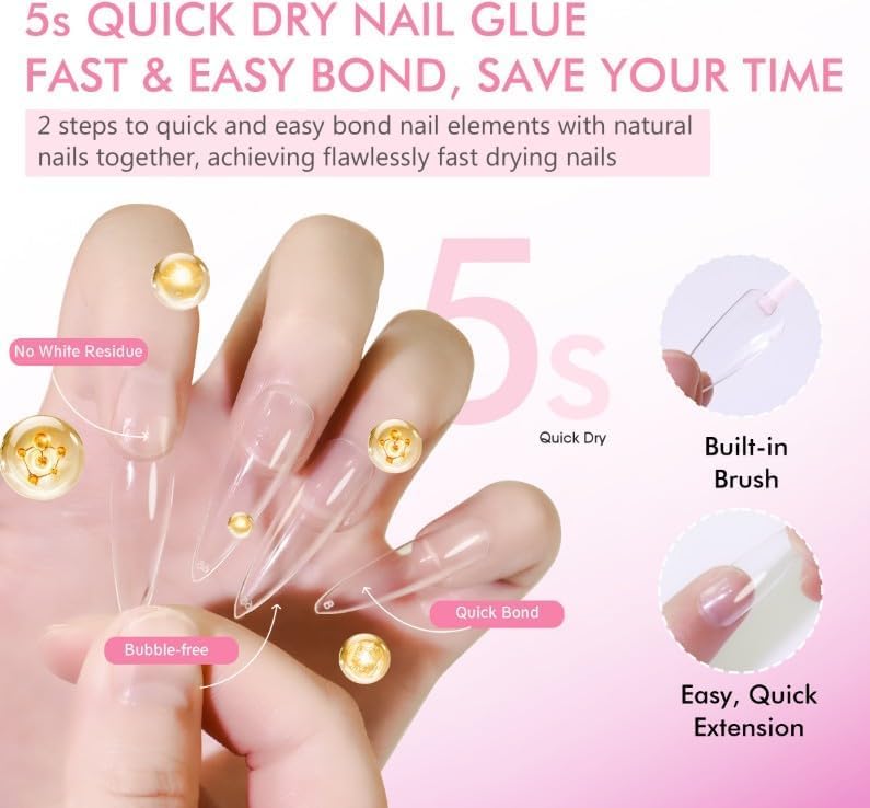 Generic - Nail GEL Glue press on nail glue with brush for nail tips Strong Adhesive for Acrylic Nails Brush on nail tips Extension Glue Long-Lasting Quick-Drying Glue-8G