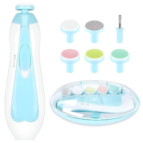 Generic - مجموعة تشذيب الأظافر - مقص كهربائي 6 في 1 مع ضوء LED و6 رؤوس جلخ للعناية بالأظافر سهلة وآمنة للأطفال الرضع والأطفال الصغار