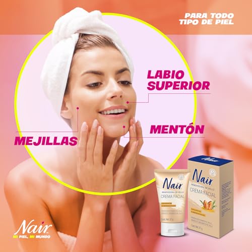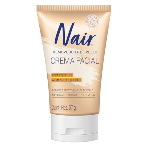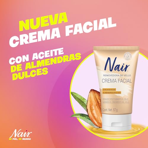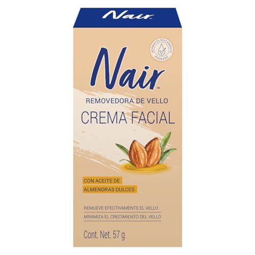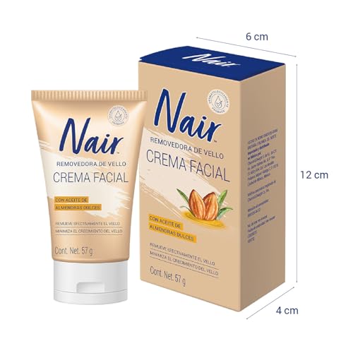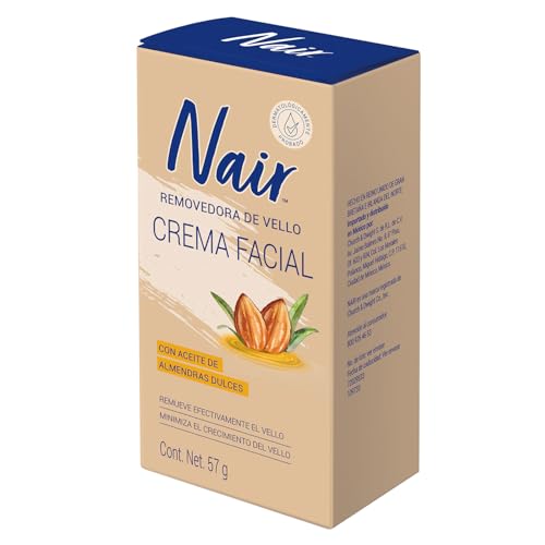 Nair - كريم مزيل شعر الوجه بزيت اللوز يعمل في 5 دقائق من نير، 57 جم