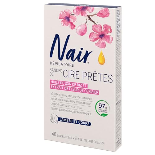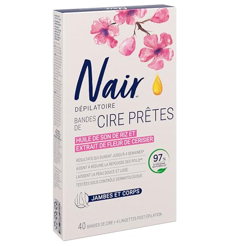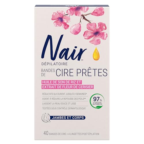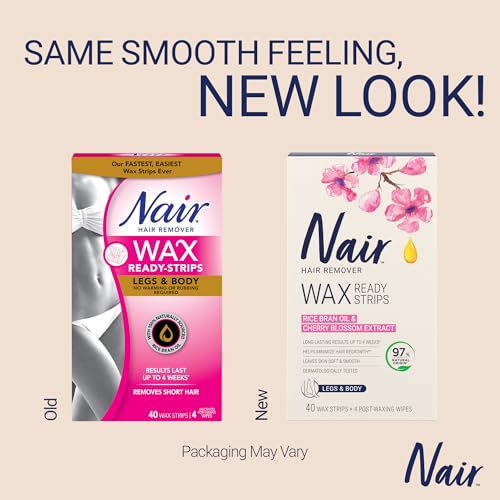 Nair - Nair Wax Ready Strips for Legs & Body with Rice Bran Oil, 40 Strips + 4 Finishing Wipes, Packaging May Vary