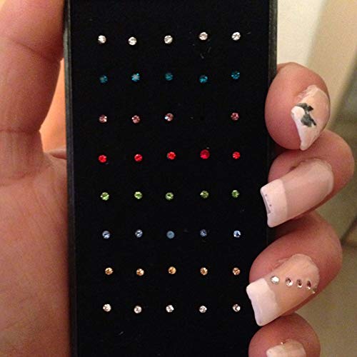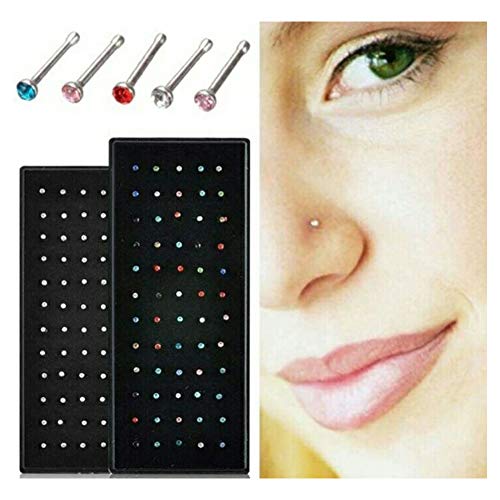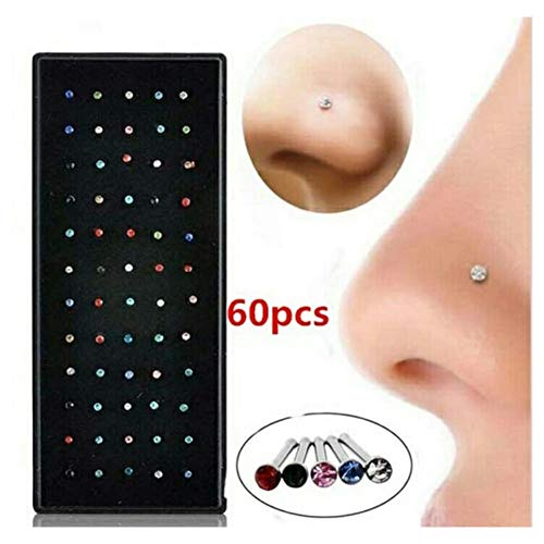 Naisde - 60 قطعة من حلقات الانف - مسامير من الستانلس ستيل الجراحي مع احجار الراين الكريستالية - مجوهرات ثقب متعددة الالوان