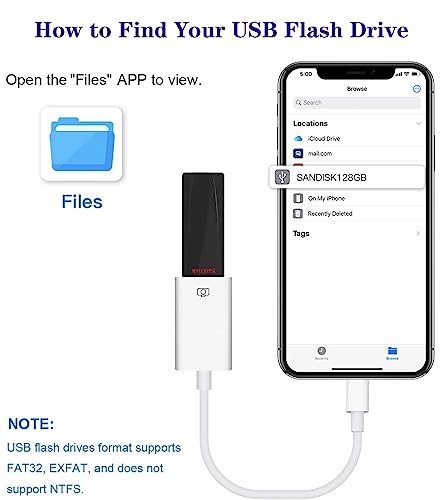 - How to connect: Connect the Lightning USB Camera Dongle to iPhone/iPad, open the Photos app, which let you choose photos and videos to import, then organizes them into albums. Tips: If there is no any dispaly when your plug USB Flash Drive. Just find "Files" on the desktop and click "Browse" then you can see the USB Flash Drive on your iPhone.