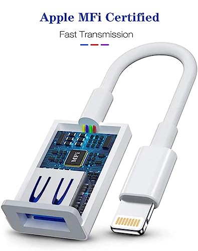 Naiyal - Lightning to USB Camera Adapter, Apple MFi Certified USB OTG Cable Converter for iPhone 14 13 12 11 Pro Max XS XR X 8 iPad, Support Camera, Card Reader, USB Flash Drive, MIDI Keyboard (White-1)