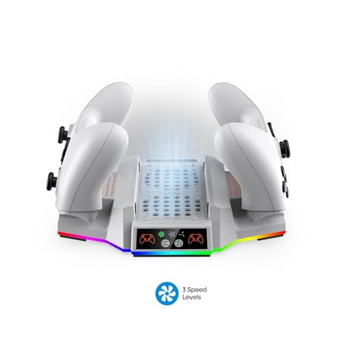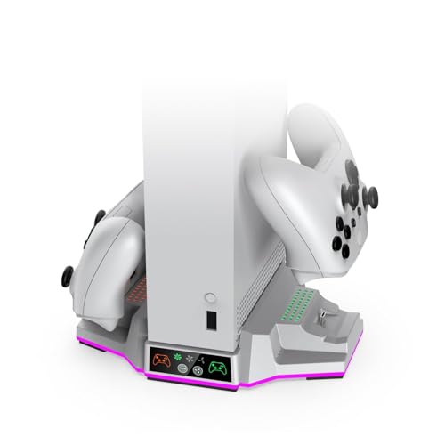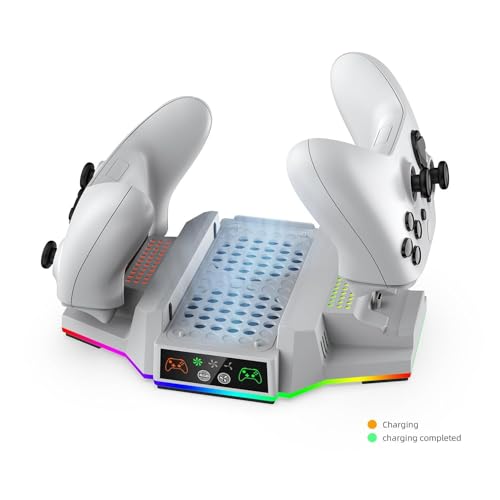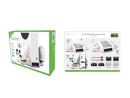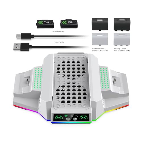 NALACAL - حامل تبريد بإضاءة ار جي بي لجهاز ألعاب الفيديو اكس بوكس سلسلة S، قاعدة شحن مزدوجة مع مراوح تبريد رياح قابلة للتعديل بـ3 مستويات ببطاريتين قابلتين لإعادة الشحن، شاحن تبريد من نالاكال (أبيض)