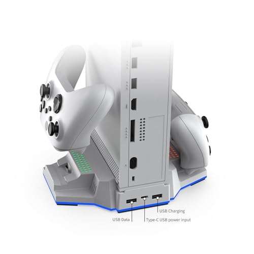 - ❄️ قاعدة تبريد 3 في 1: تم تصميم قاعدة الشحن هذه خصيصًا لسلسلة اكس بوكس S. وتتميز بمروحتين تبريد، وقاعدة شحن مزدوجة لجهاز تشغيل ألعاب الفيديو وإضاءة ار جي بي، مما يوفر حلًا شاملًا للتبريد والشحن.