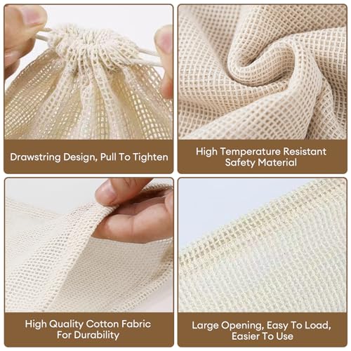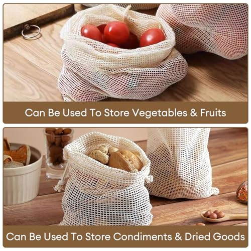 - 【Organic Cotton Mesh for Sustainability】Crafted from organic cotton mesh, these bags are not only eco-friendly but also washable and reusable. The double-stitching ensures they are robust and long-lasting. By choosing this environmentally friendly option, you contribute to protecting the planet.